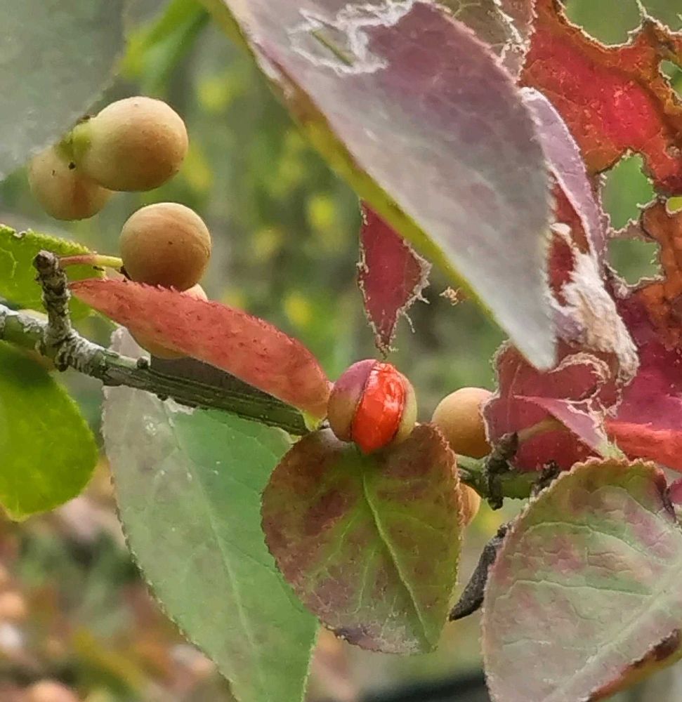 施設の庭に1本だけあるニシキギの木に実がなっていました。