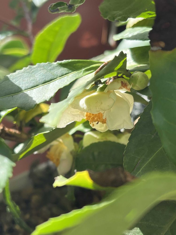 カキツバタさんの玄関アプローチ,茶の木の花の投稿画像