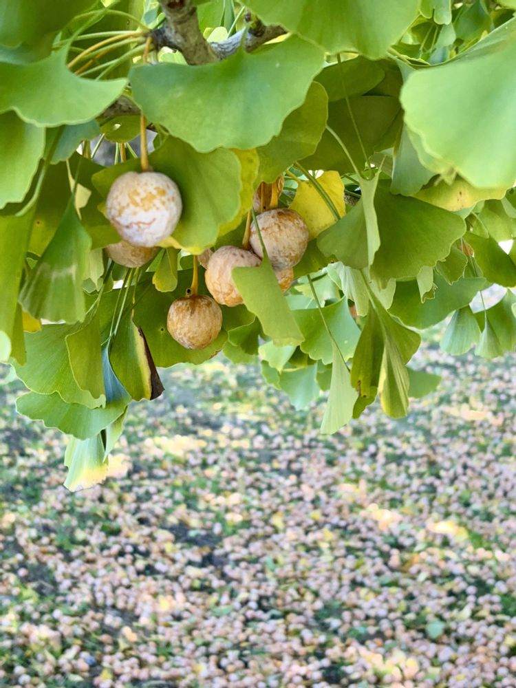 黄色の『イチョウ』じゅうたんが見れるはずが。今年は『ぎんなん』のじゅうたん。