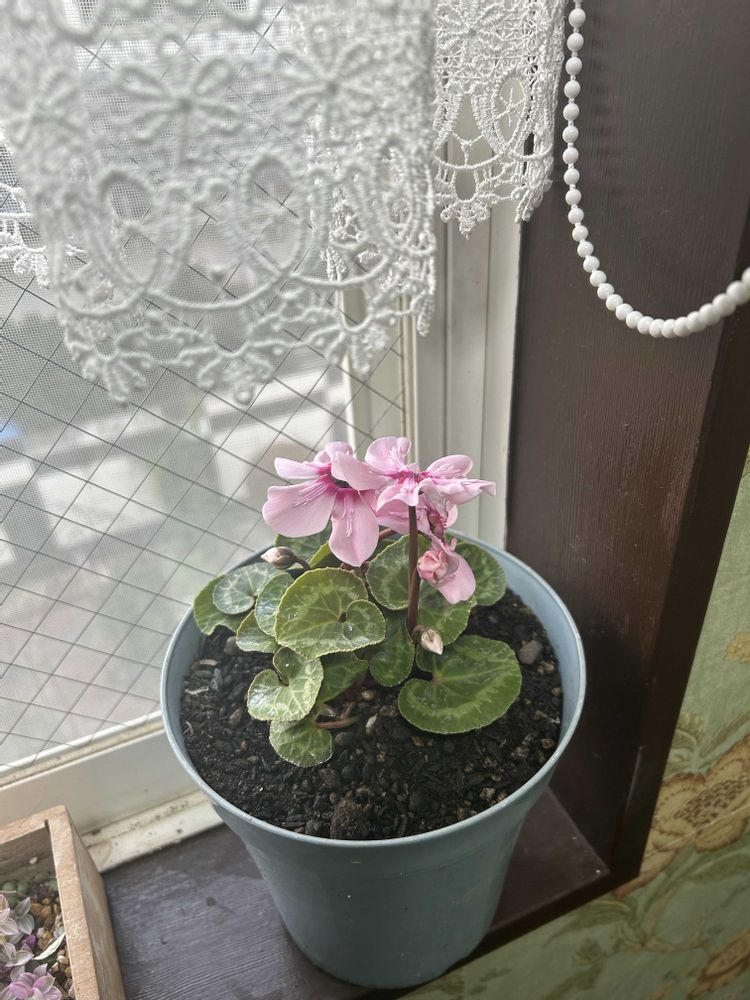 シクラメンは、トモさんとお揃い、お家🏠の方が、いいみたいだから、机からよーく見えるところに置きました。