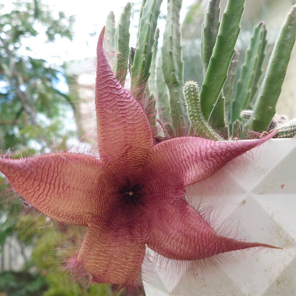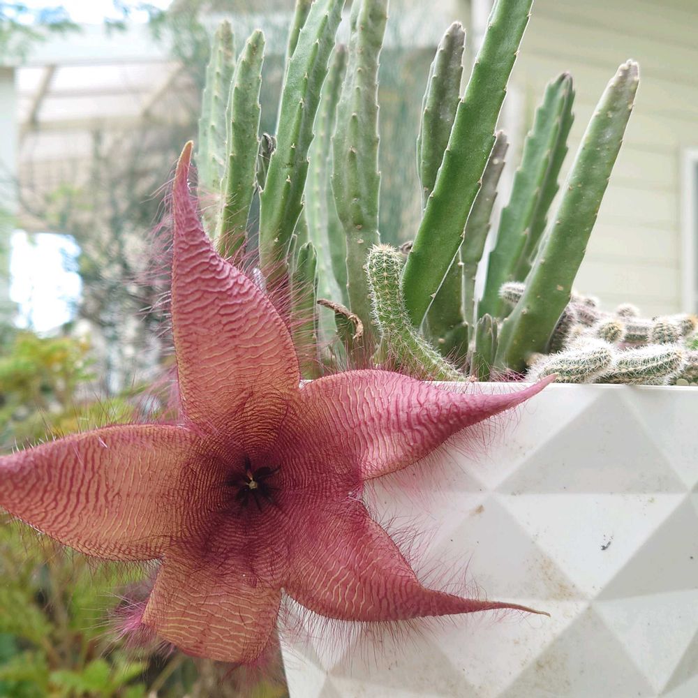 可愛い系とは逆のキモカワなスタペリア〜2年前に蕾付きで買って咲いたけど、昨年はお花咲か無いから、この花の存在スッカリ忘れてました〜🤣