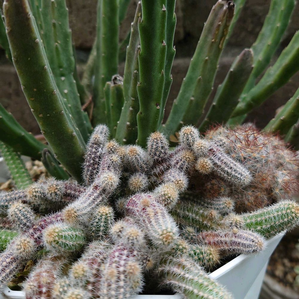 でも、お花咲いて嬉しくて、写真撮りまくりました〜気づいたのは、他の多肉サボテンもいっぱい小苗出来てて、、、でも、痛そうで鉢増しどうしょう???と、考えてます〜😅