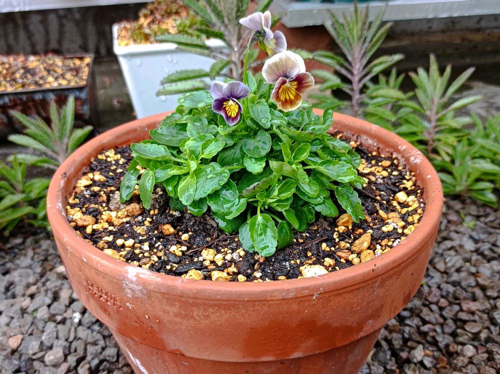 昨シーズン同様の鉛色の5号素焼き鉢に植え替えしましたが( ̄▽ ̄;)春には株はパンパン❤️になる😂😂😂😂😆😂