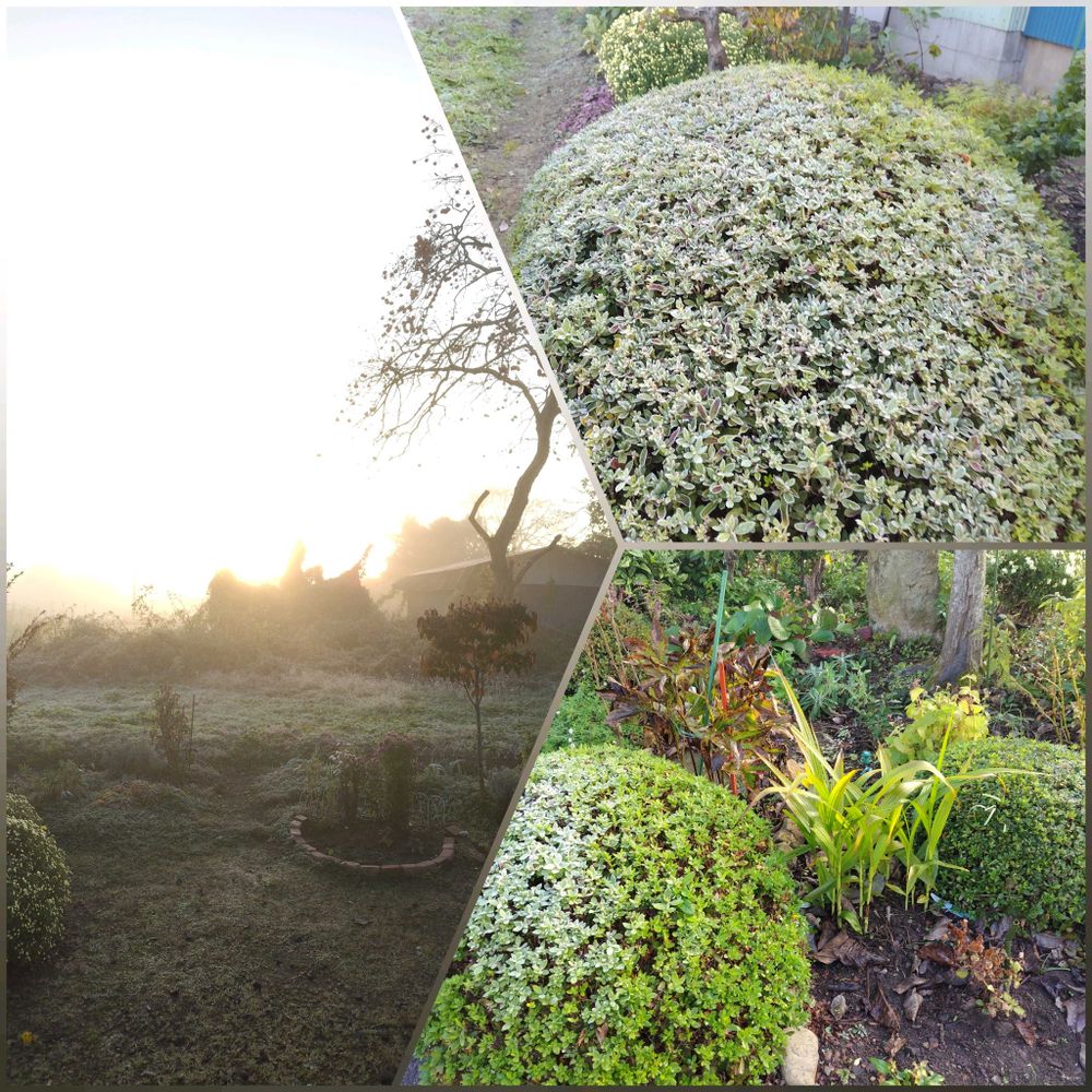 2枚め…今朝の強い霜で、庭も一面真っ白👀💦