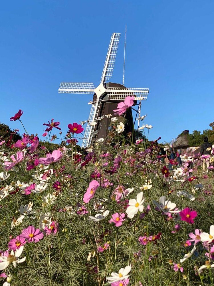 花博記念公園の風車と花 素敵ですよね💕︎