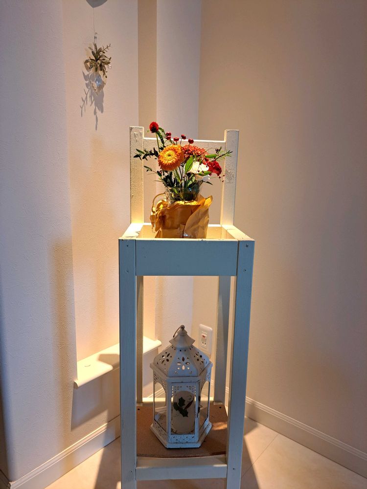 わーステキ✨✨手作りの花台にオシャレなお花💕💕飾り方もステキです💠💠