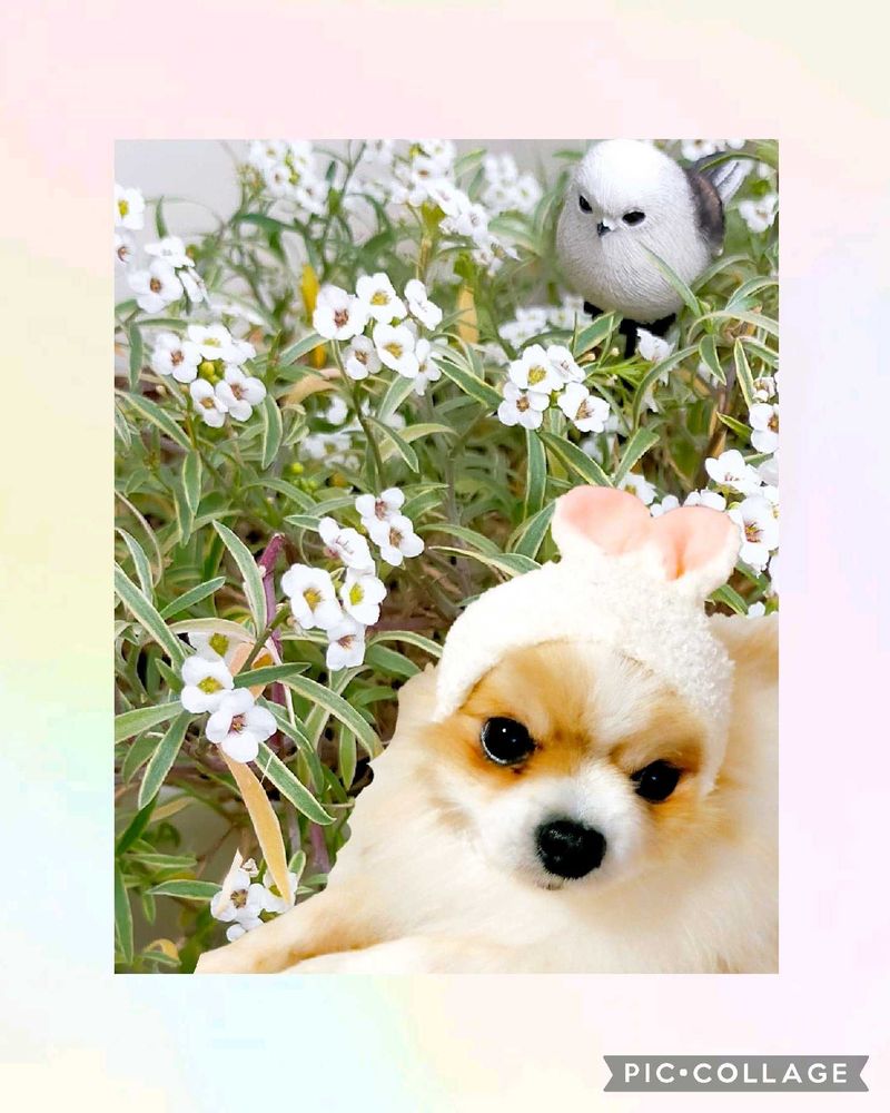 🐰のおぼうぼ被ったもこฅ՞•ﻌ•՞ฅワン♡ とスーパーアリッサム🤍🤍🤍
