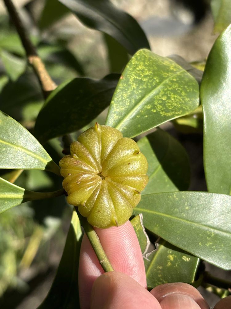 たぶん🤔この緑色の実が、もう少しすると茶色くなって八角に似てくるのかなぁ?