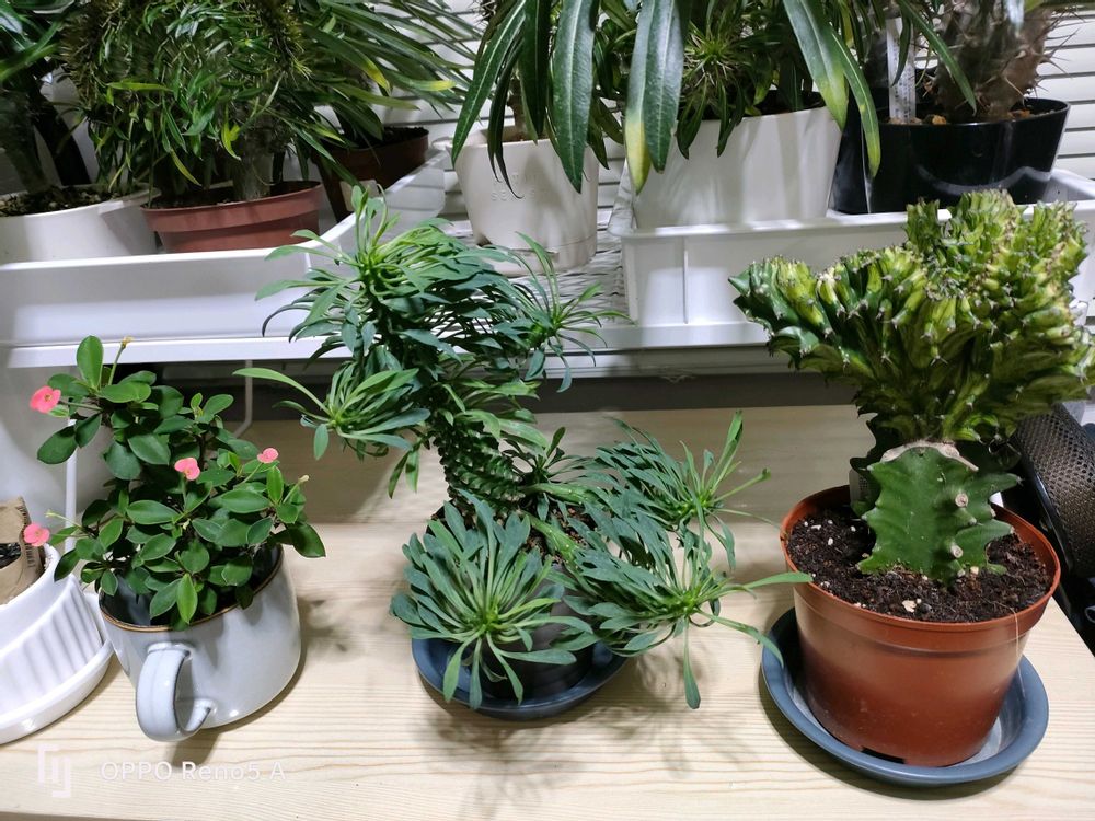 パキポディウム&ユーフォルビアをベランダから室内に引っ越して来ました。