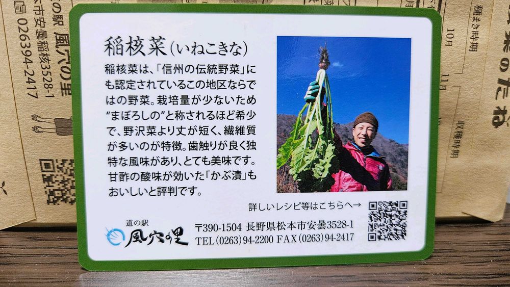 稲核菜は、長野県の稲核ダムがある地域で栽培されています