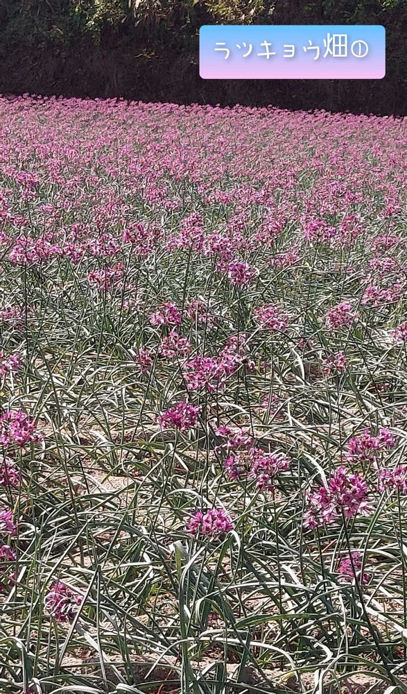 らっきょうの花、こんなにたくさんさいているのを見たのは初めてです