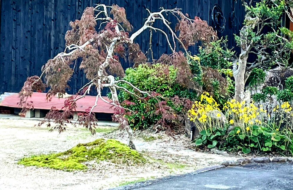 m&oさんの朝の散歩道,通り道のお宅の玄関横に,楓と石蕗の投稿画像