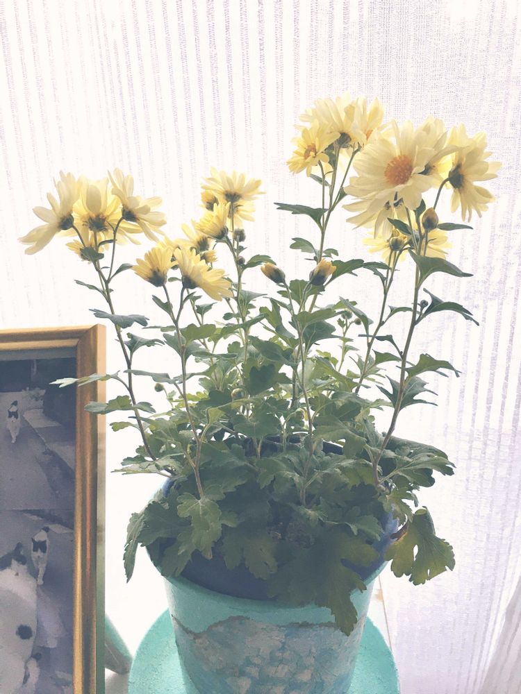 挿し芽スプレー菊がきれいに咲いたので、室内で愛でています