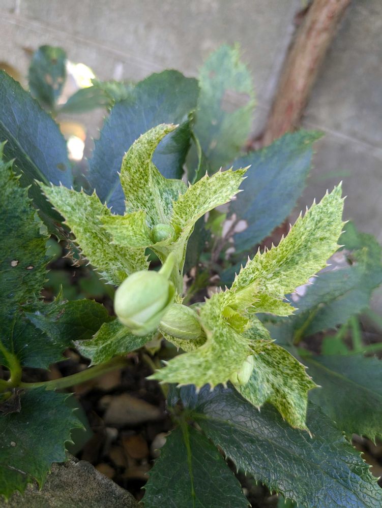 出かける前にクリスマスローズを、チェックしてたら、あれ、もう蕾が、出ていました。