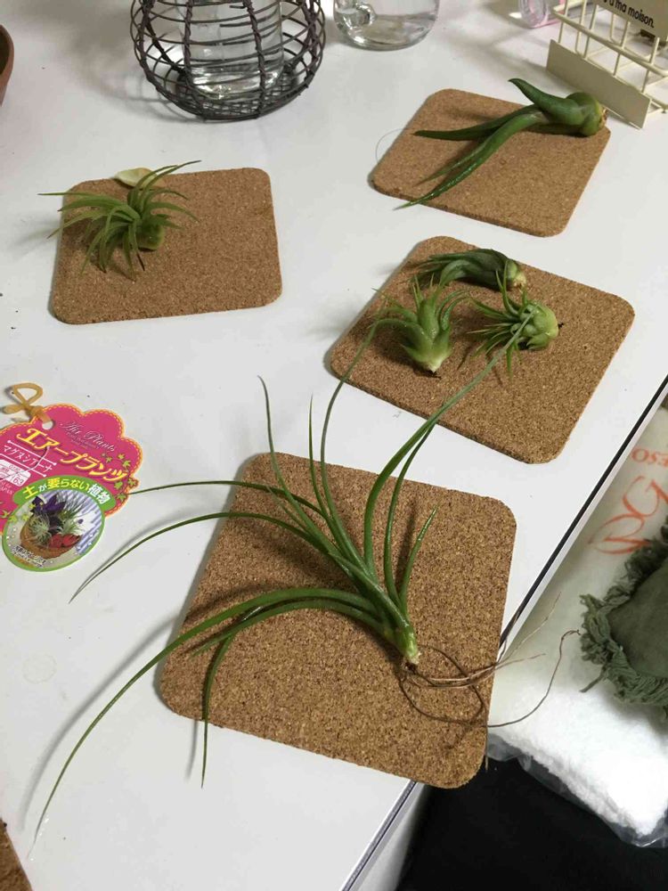 三つコルクに乗っけているエアプランツは最近仲間入りしました。