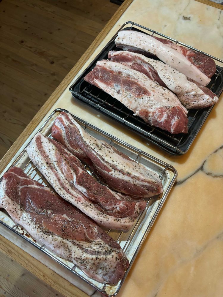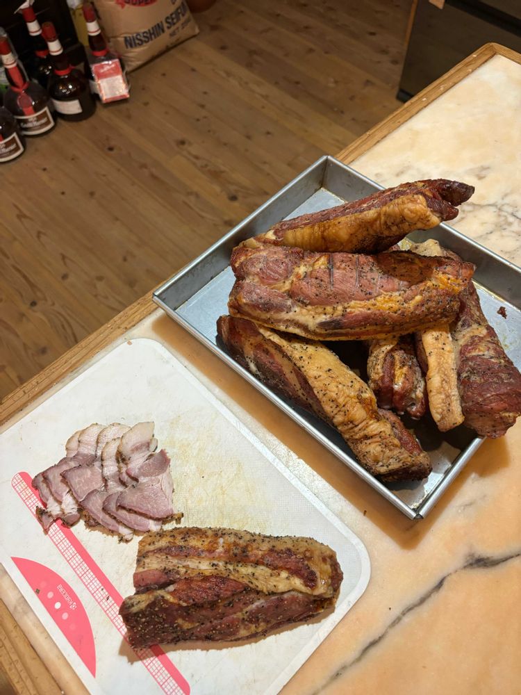 すえすえさんのベーコン,桜のスモークウッドで、燻した。,豚肉ブロック、塩胡椒の投稿画像