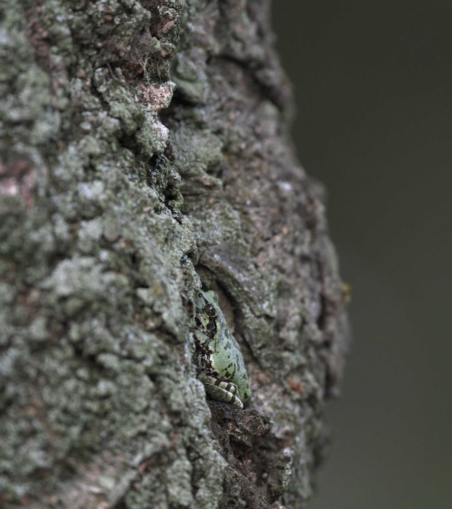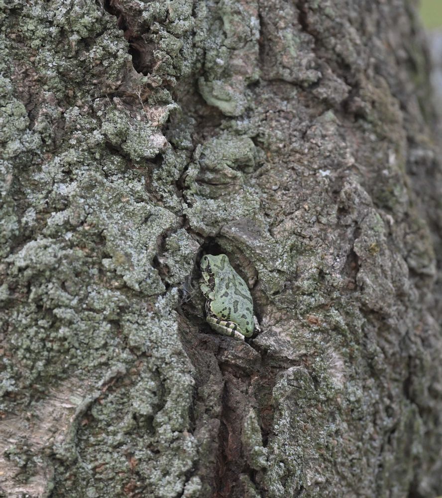 サクラの古木の窪みにいるのはアマガエルさんでした🤗