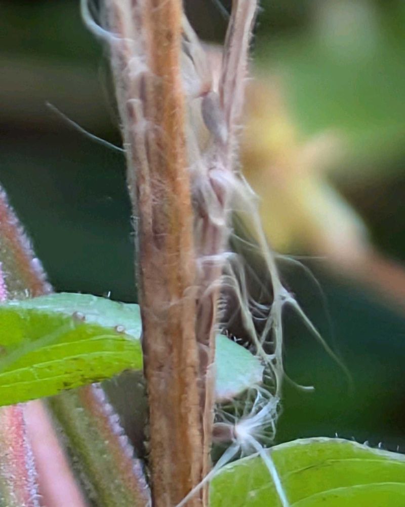 アカバナ蒴果から綿毛(種髪という)を付けたタネを見たくて、アカバナを知ってから叶えられなかったこと。昨日、漸く見る事が出来ました。