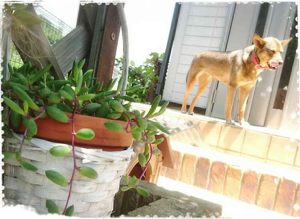 ぺろりんちょ(別名ニコ)ともりもりしてきた葉挿しっ子ルビネさんです(❁´ω`❁)