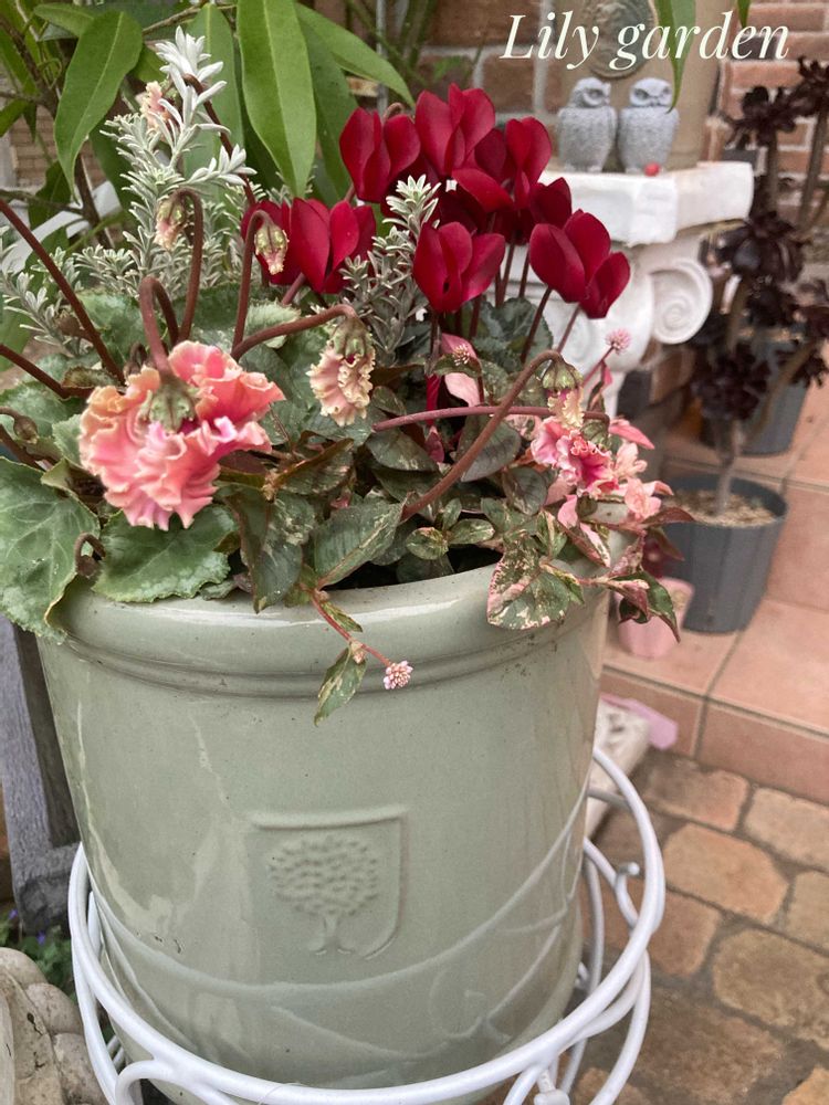 シクラメンのタキシードと森の妖精で寄せ植えしてみました♪
