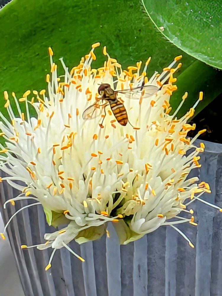 ホソヒラタアブが花の蜜や花粉を食べにきているので受粉してくれたカナ?