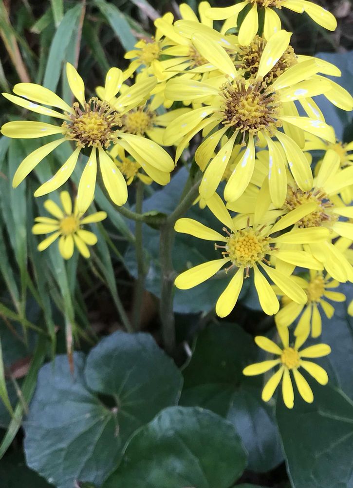 隣の公園で、ツワブキの花が咲いています。家のツワブキの花は、まだまだ咲く気配がありません!