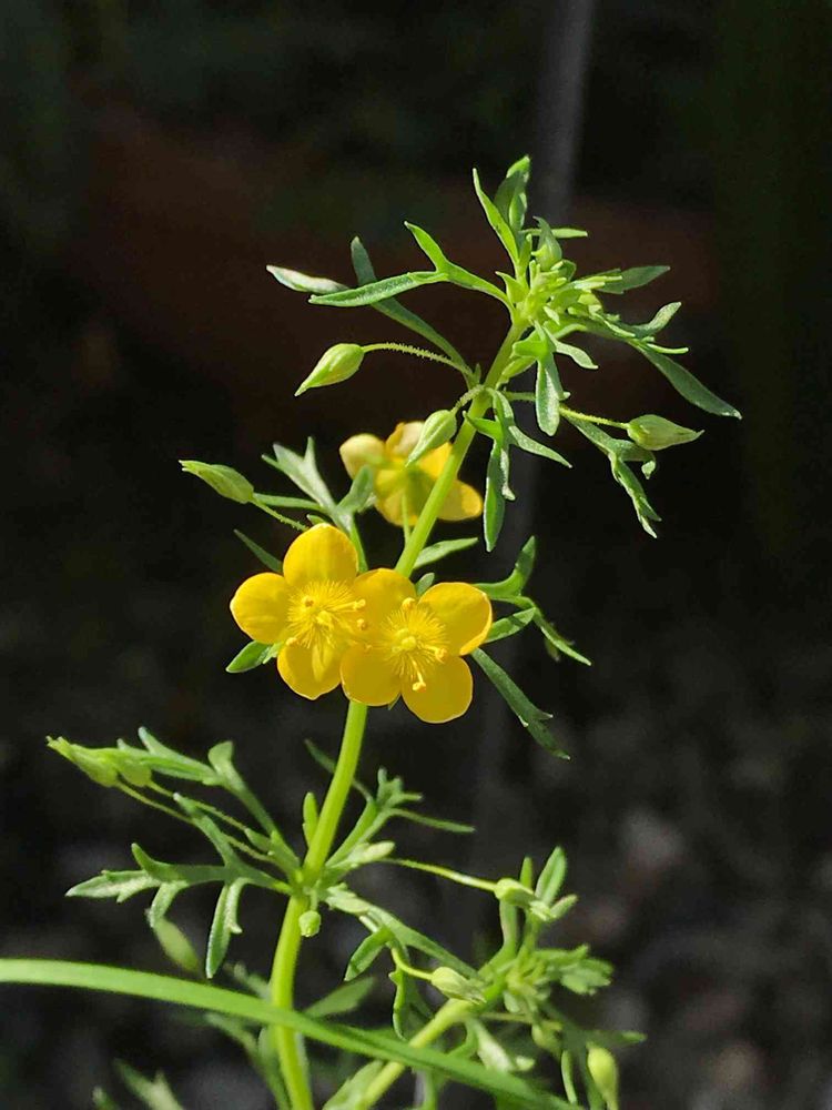 ここ1週間くらい生えてます。葉っぱが細く黄色の4枚花弁のこの花の名前がわかりません。