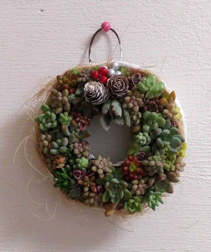 今日、多肉教室に行ってクリスマスリースとチマチマ寄せ植え作りました