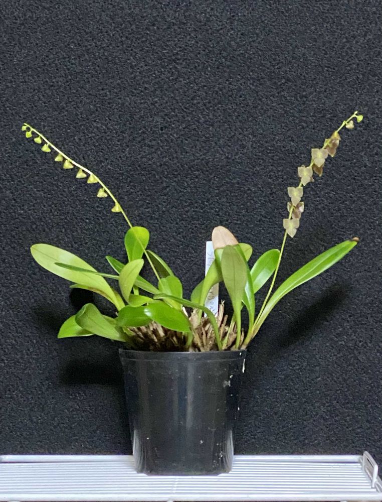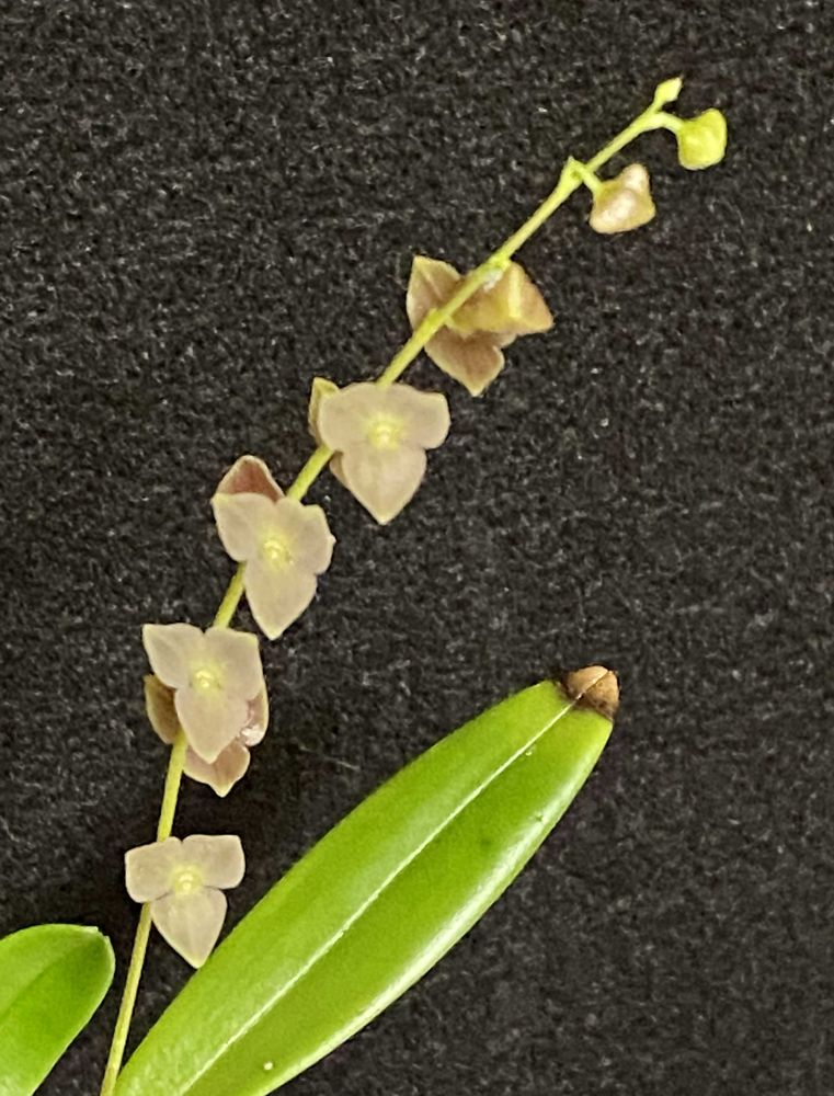 ③ 10倍のルーペで見ても良く見えませんが、逆向きに咲いていて、3枚がセパルで、中心部にペタルとリップが何とか確認できます。