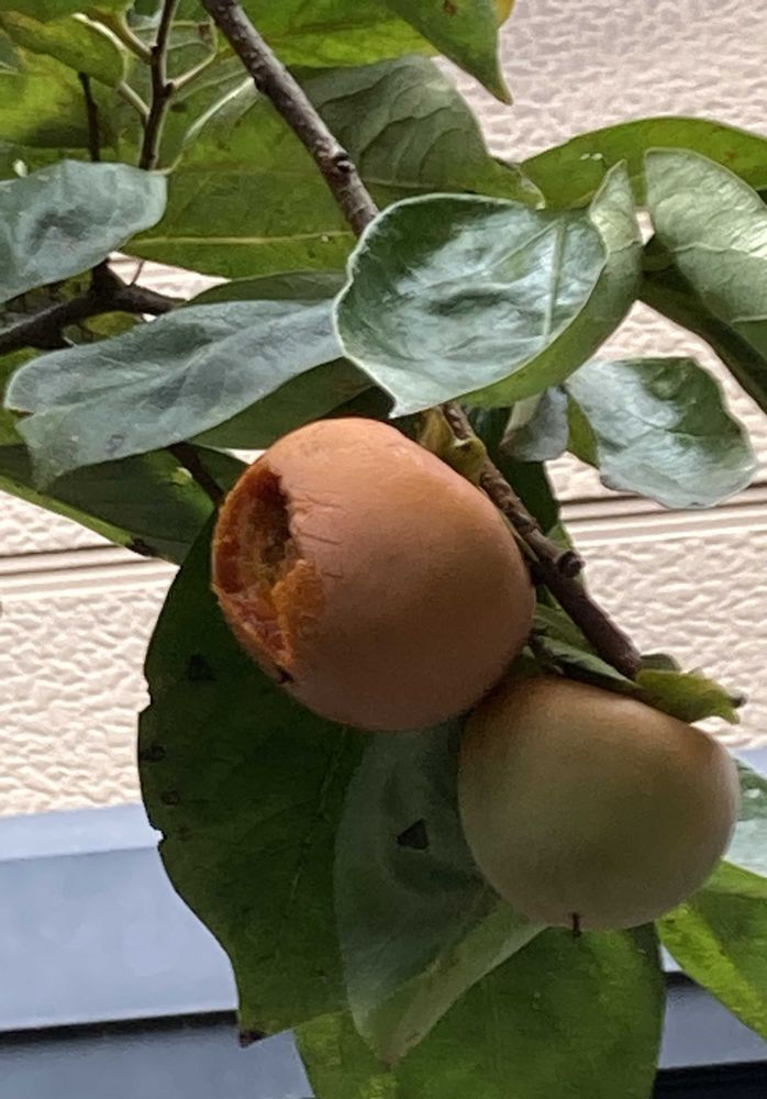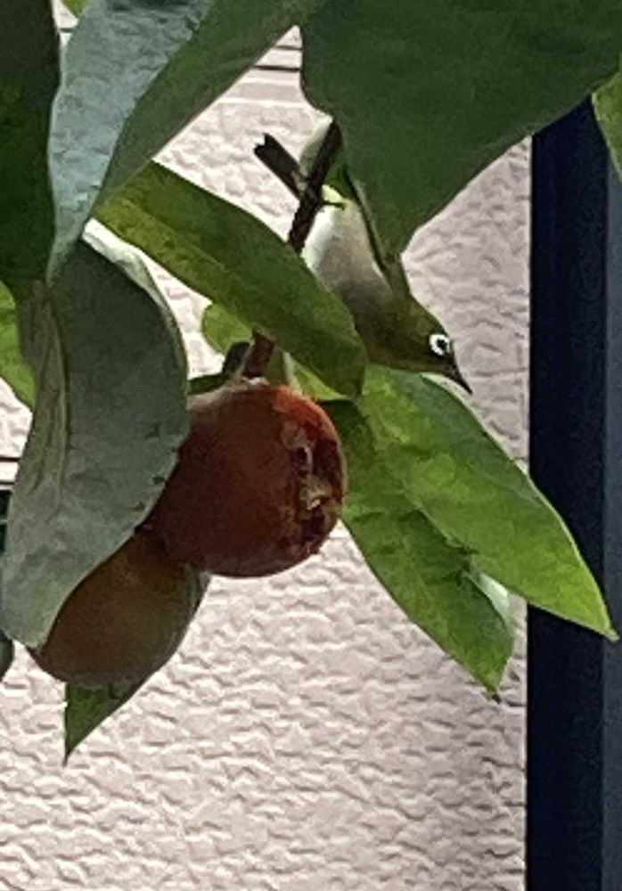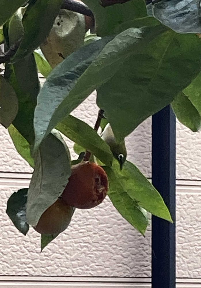 庭の柿が食べ頃を迎えていると思ったらメジロの方が先に食べ頃を察知していました
