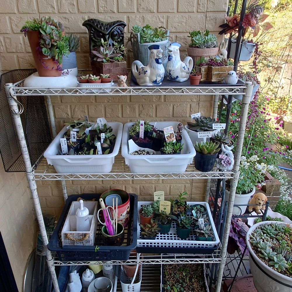 【庭シゴト】多肉棚落ち着きました✨