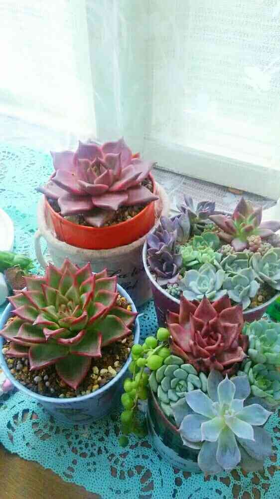 窓辺,多肉寄せ植え,エケベリア属の投稿画像