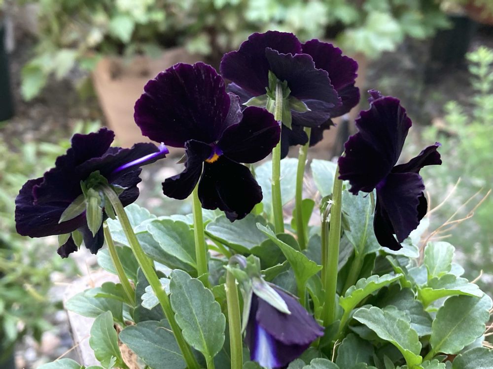 冬の庭に咲く花は、ほぼパンジー&ビオラだけになってしまうので、出来るだけ楽しい色を!と探しますが…初めてブラック系を迎えてみました、一株だけ♡