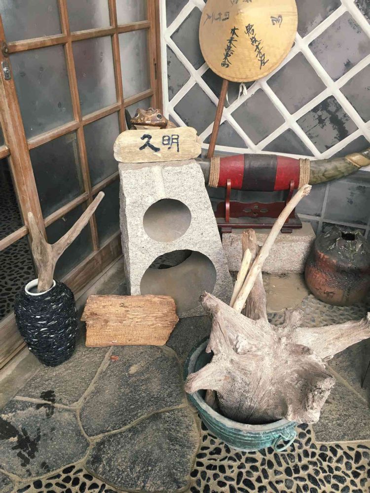 屋号の久明表札 彫刻刀で彫り屋外ペンキ塗り