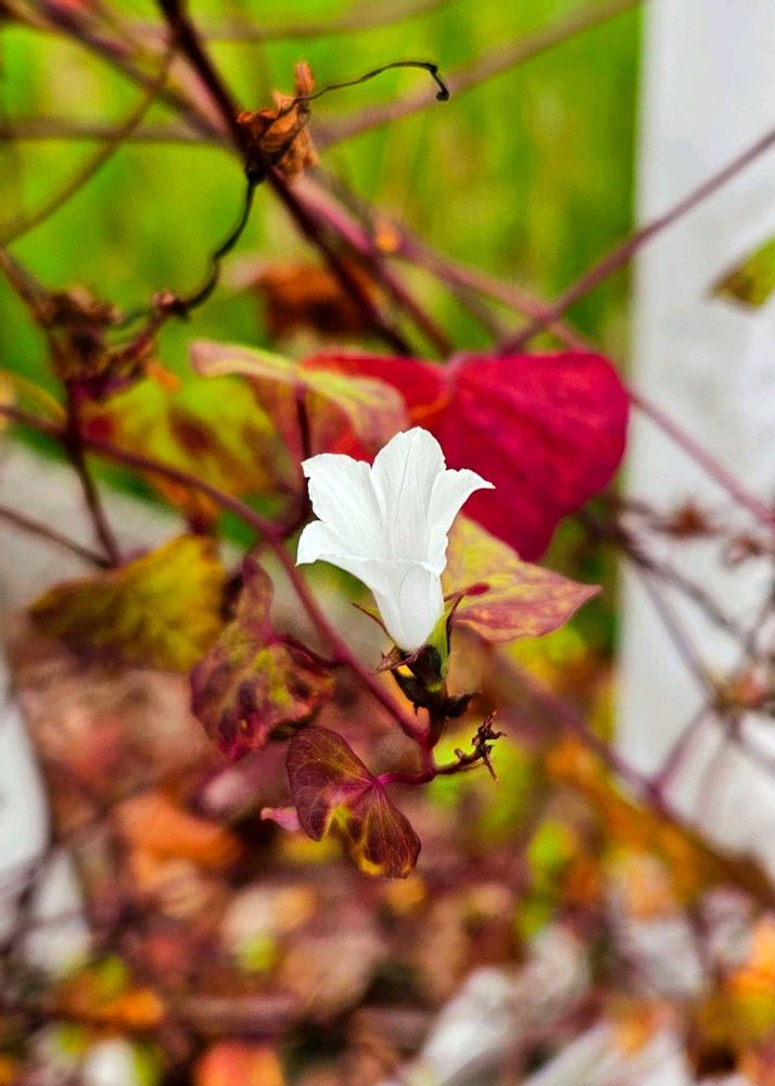 5️⃣紅葉の中にマメアサガオ?の様な花が😄✌️