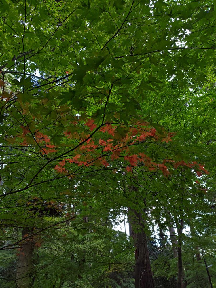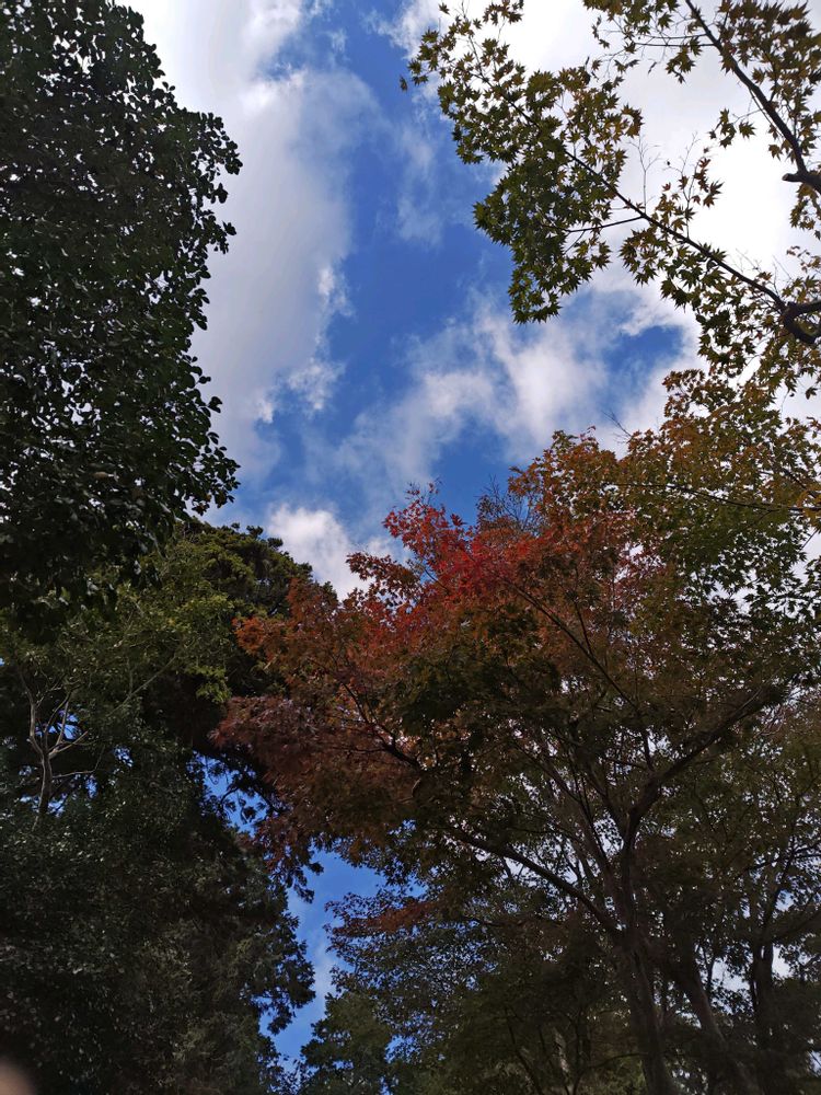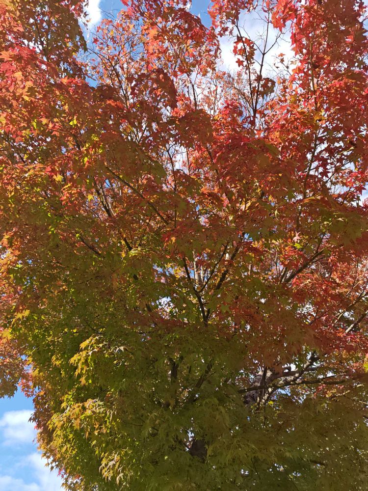 秋空に映える紅葉のグラデーション❤️🧡💚