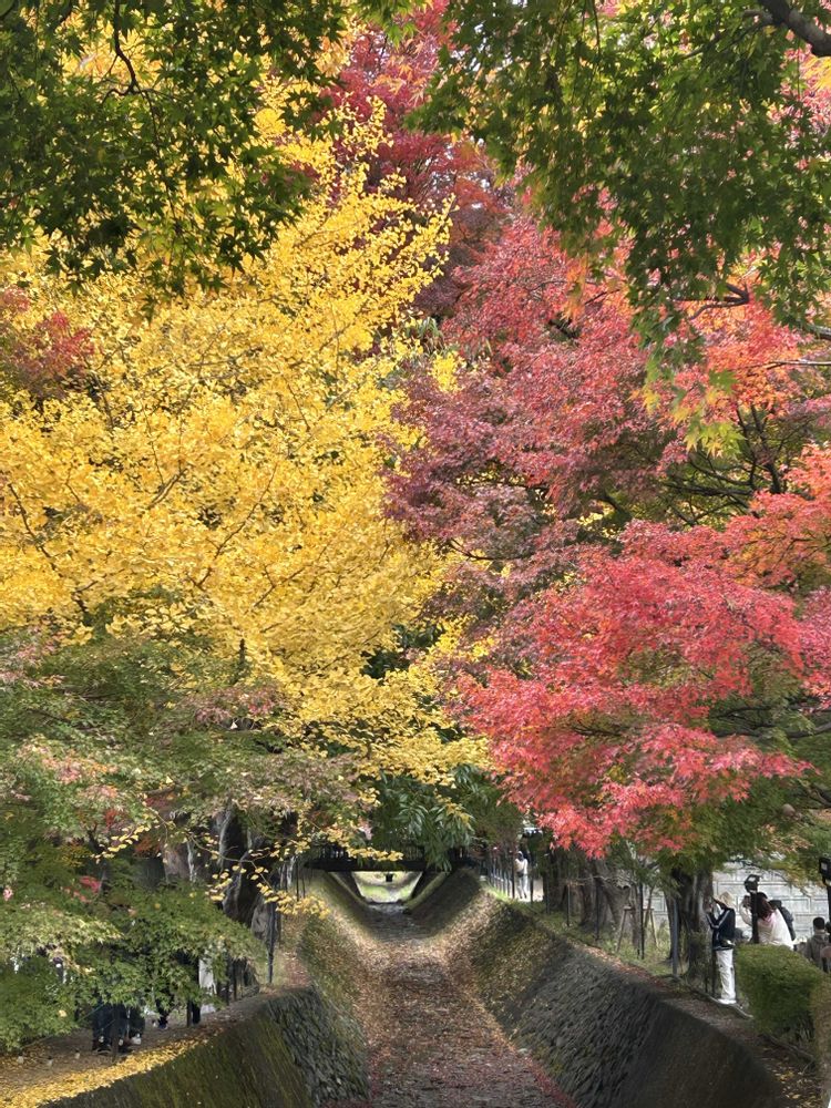 堀の両側に大きな紅葉の木が植えられて、落ち葉🍂が堀を彩って、素敵な景色をつくっていました。