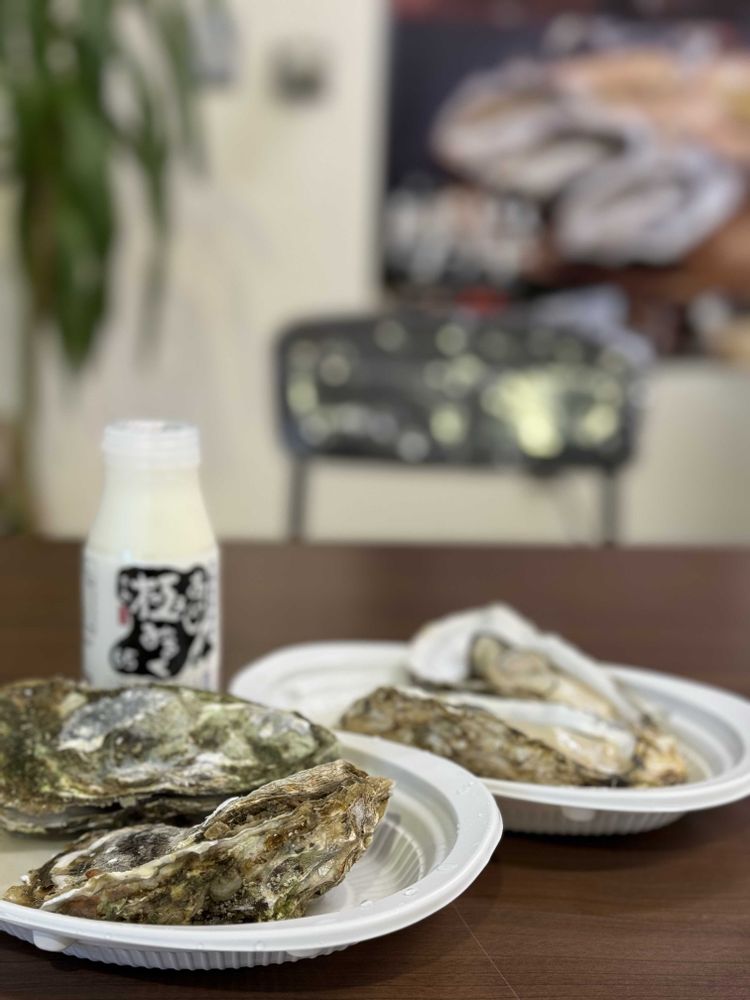 ①漁業組合直売店で 牡蠣の蒸し焼き🦪 めっちゃウマ😋