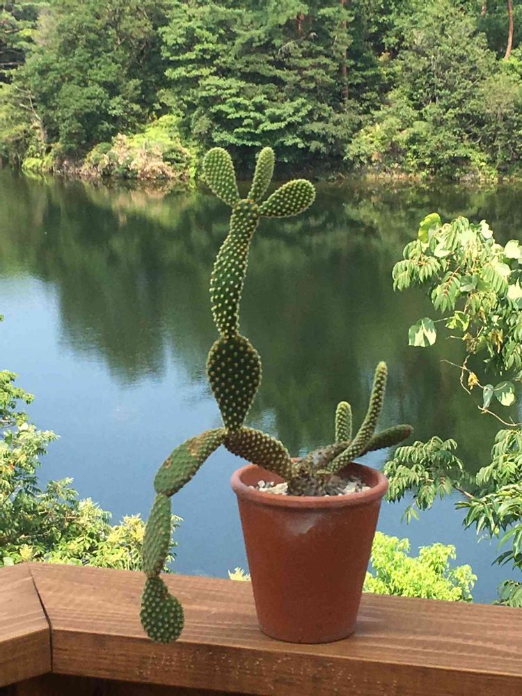 かまあげさんの団扇サボテン,池が見えるデッキの投稿画像