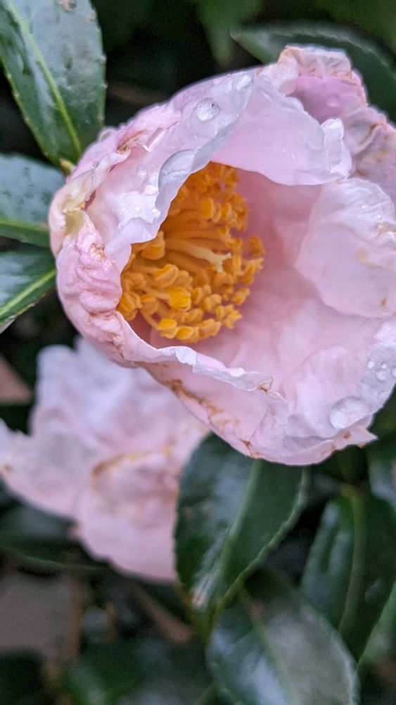 ピンクの山茶花は初めて見ました😍🎶