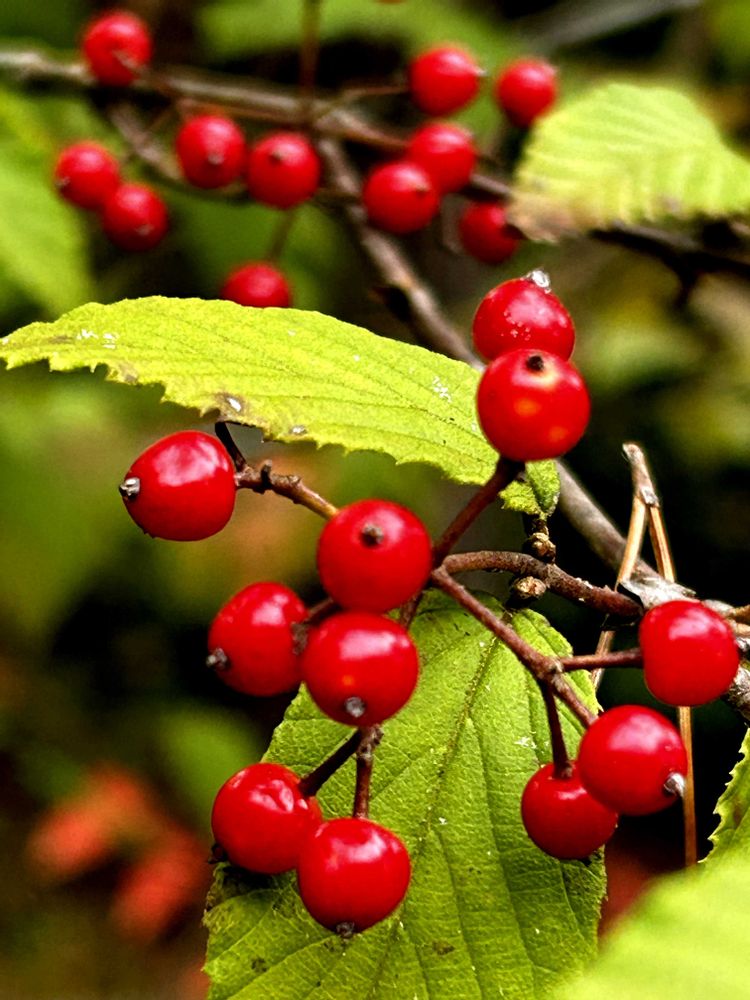 黄緑色の葉に熟した赤い実の色が映えてとても綺麗です