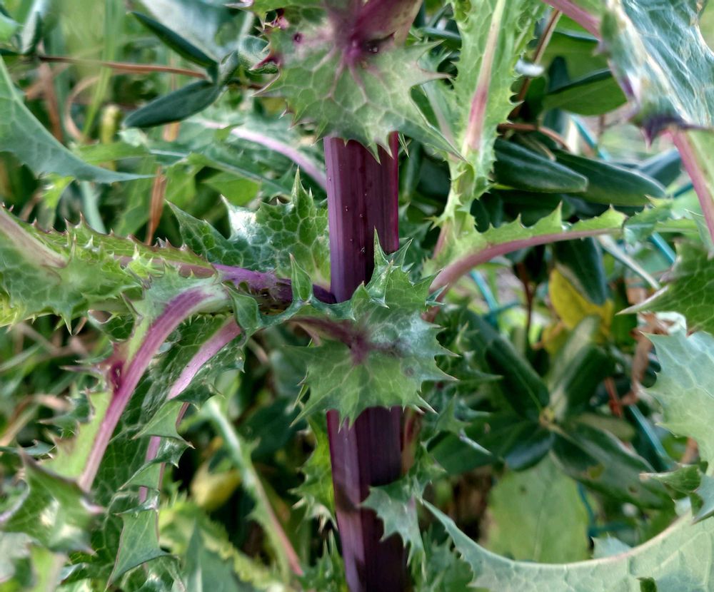 羽状に切れ込み、不規則な鋸歯の先には鋭い刺があって触ると痛い