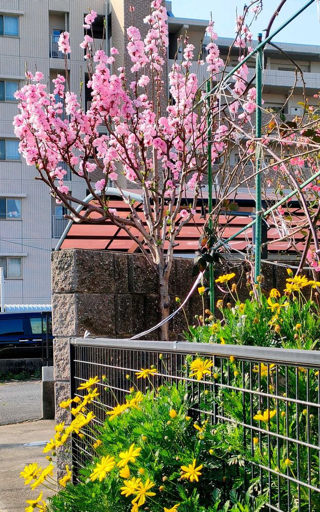 春にはハナモモの下で咲いて、とても綺麗でした。