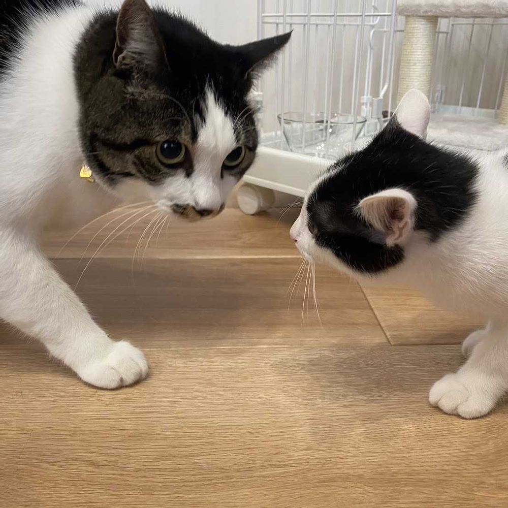 ハチワレのお顔が2ニャン似ている感じがします💕