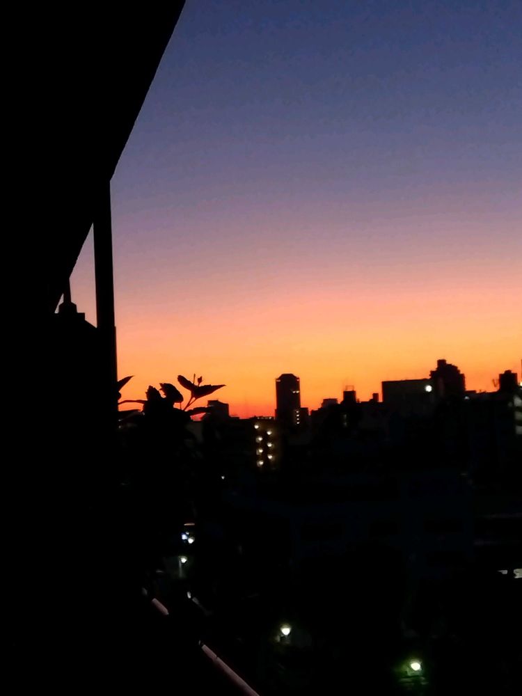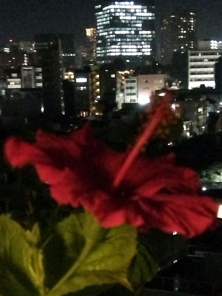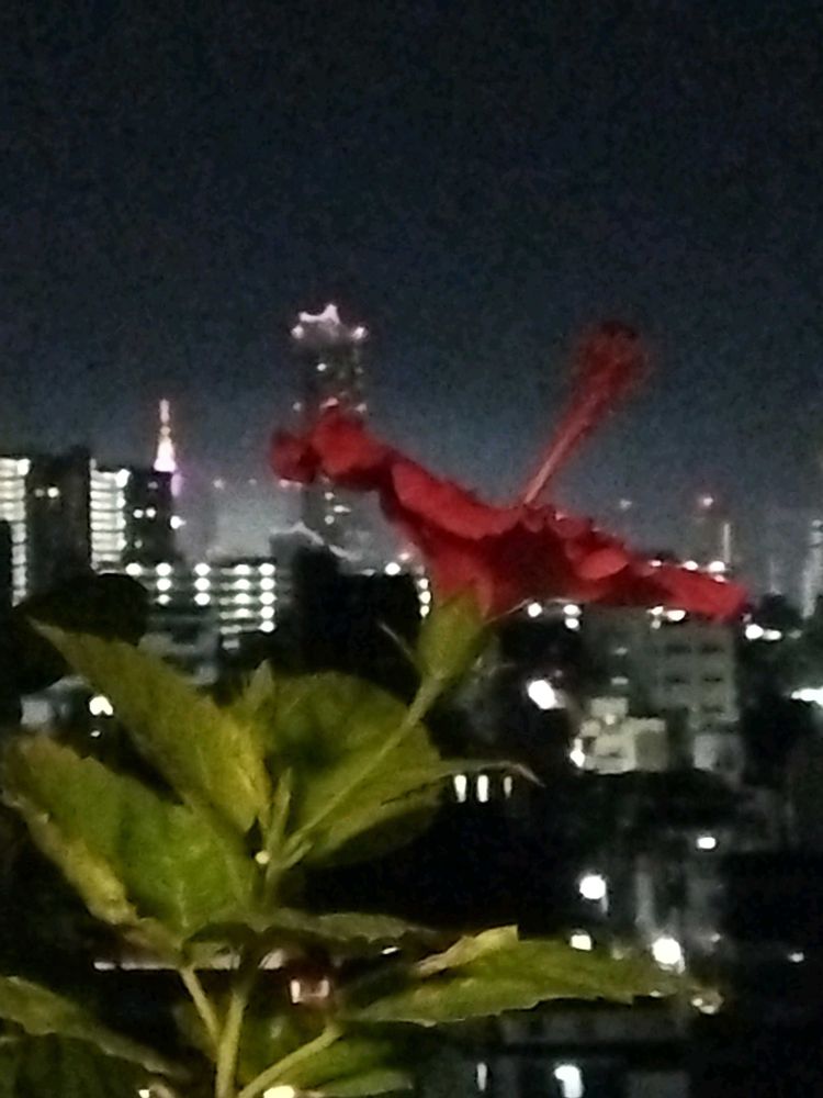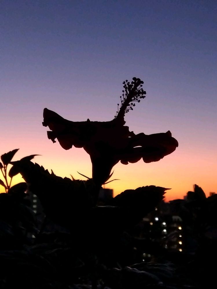 昨日のハイビスカス2日目の朝を迎え朝焼けの空に凛と咲いていました