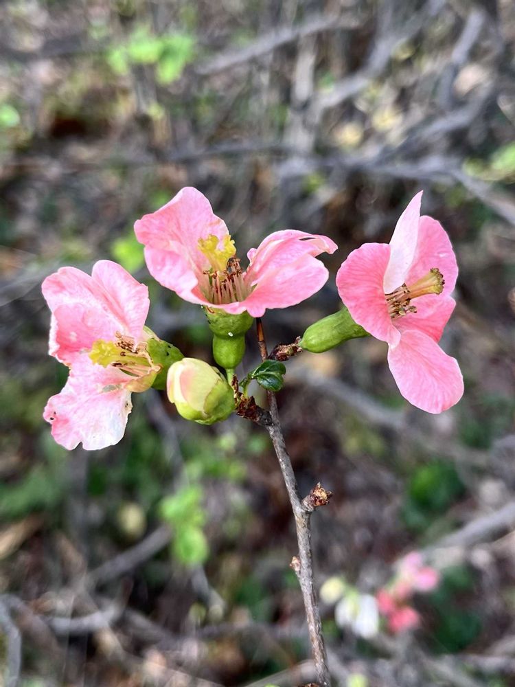 梅に似た花を咲かせます。ボケは春に咲く花ですが寒ボケは11月ごろから咲き、冬の庭を明るくしてくれます。