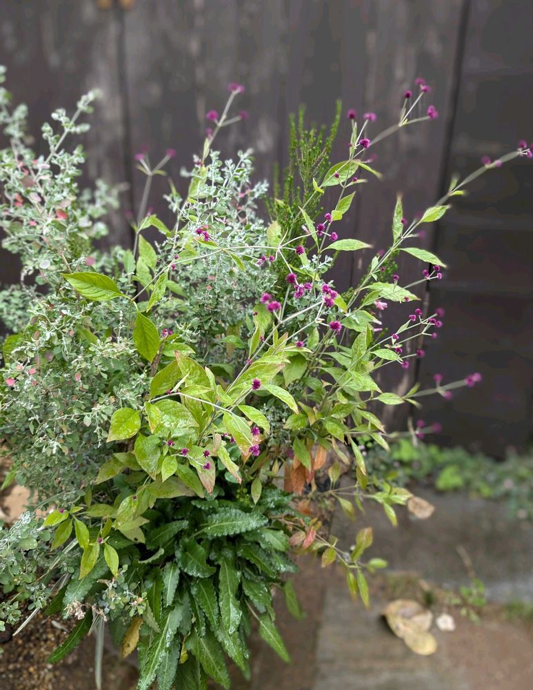 今日は千日小坊の寄せ植えと庭のバラで花遊びです