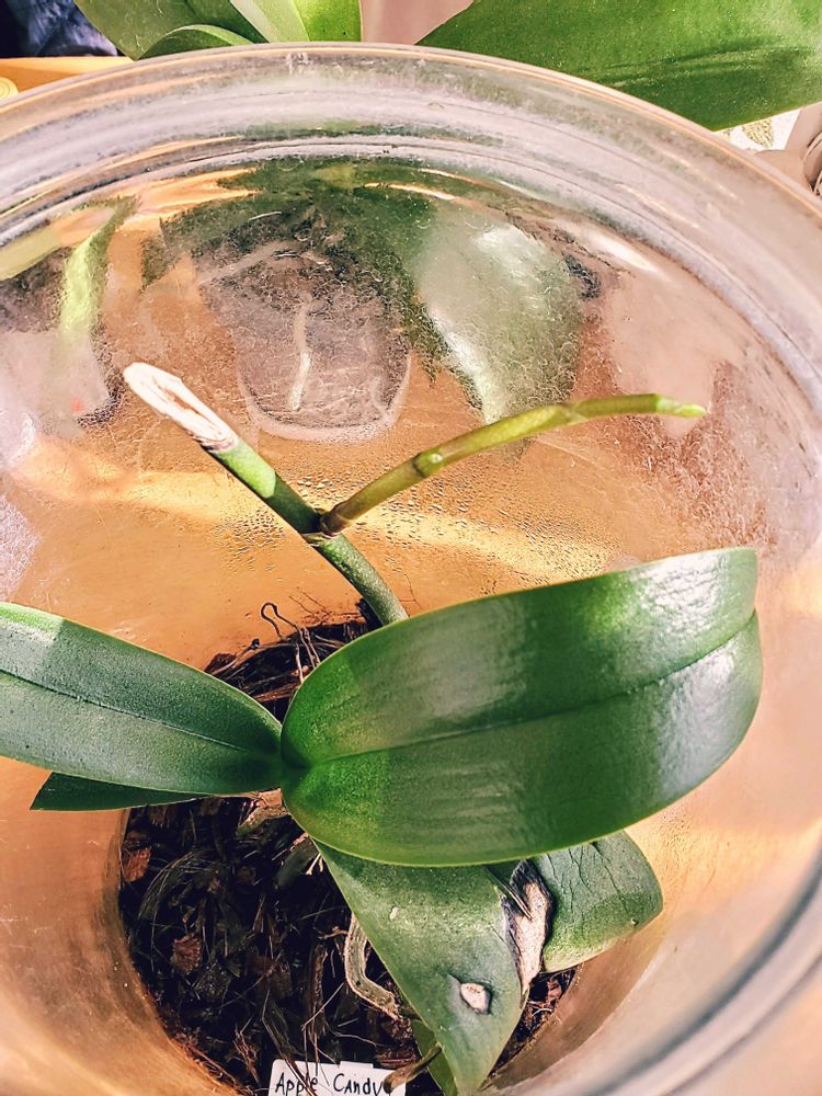 植え替えして、他の胡蝶蘭と同じように管理してたのですが、だんだん葉っぱがシワシワになってきてしまったのでICUへ…😥