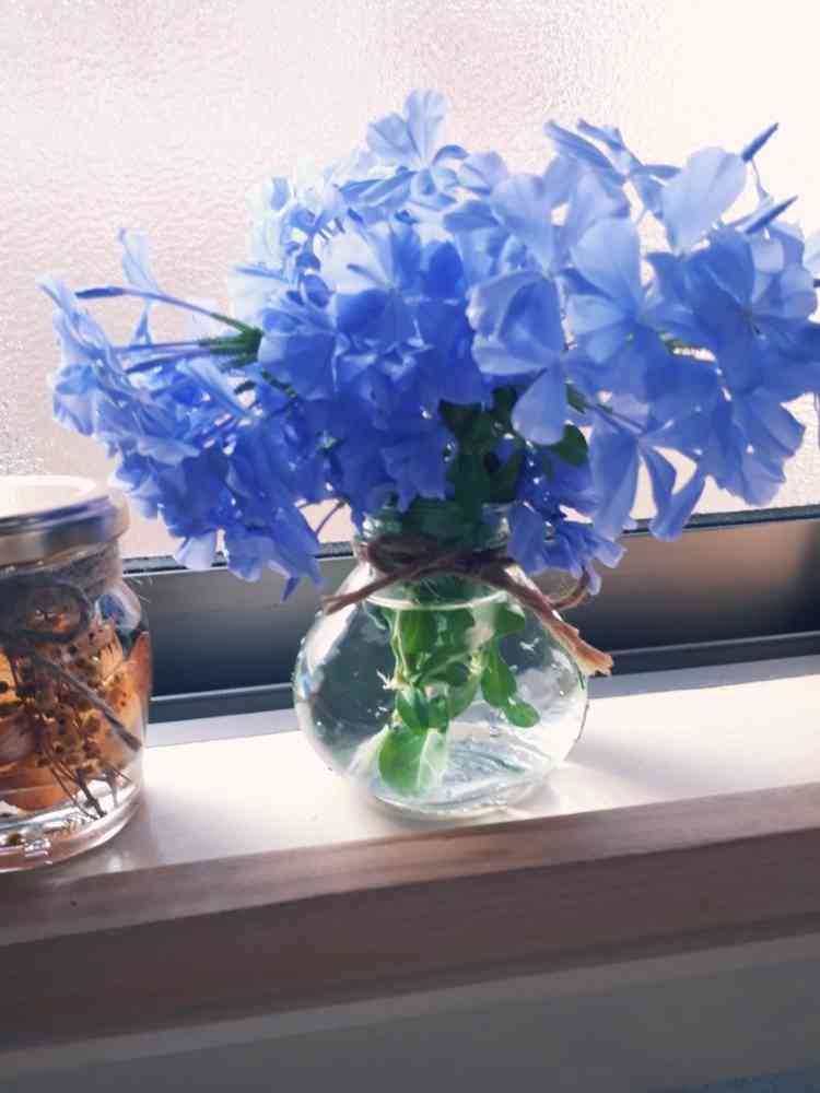 夕方の水やりついでに、ワサワサのルリマツリをカット✂️
