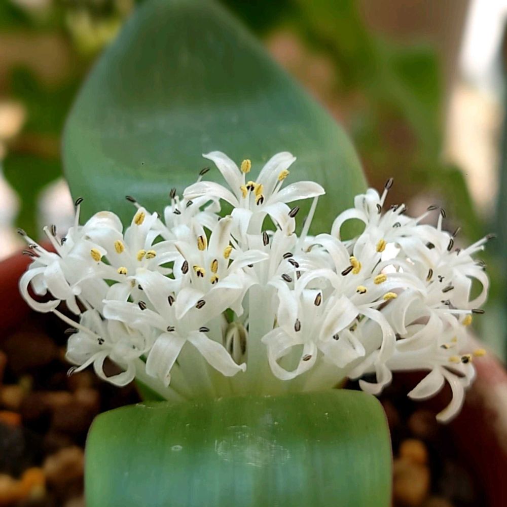 ポリキセナリトルホワイトが花束みたいに可愛いく咲きました💕